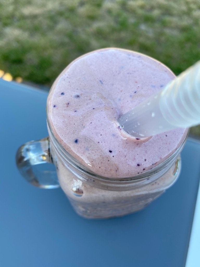 - 150 gr bevroren fruit (bosbessen, frambozen, blauwe bessen, banaan, …)