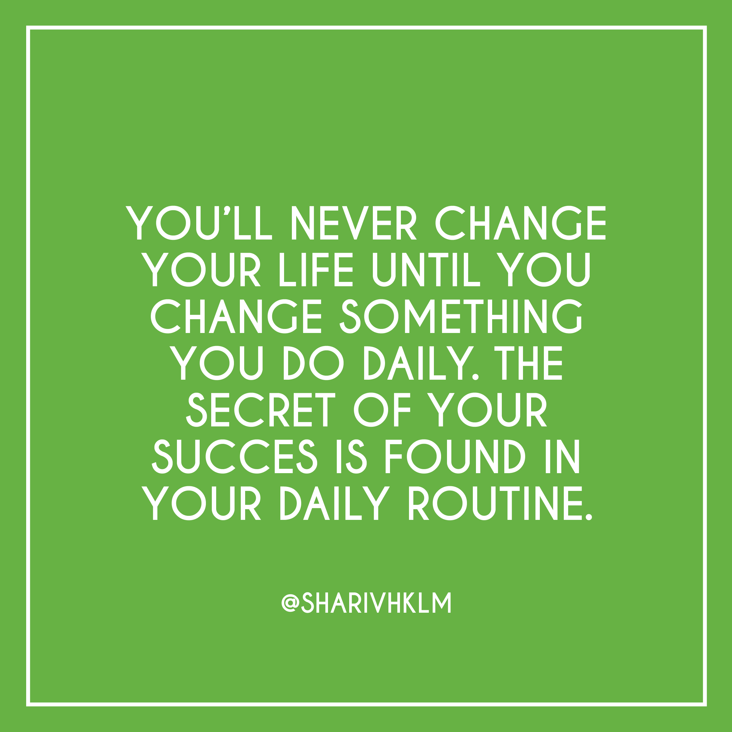 - Begin elke dag met de juiste drive en doe gewoon wat je kan op die dag. Spring niet vooruit. Dit is geen race. Het is geen dieet. Het is jouw leven.
