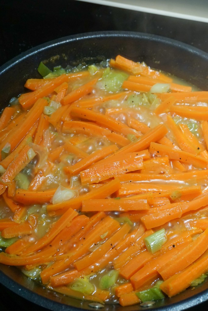 - doe de wortels en sjalot/ui in de pan en bak ze kort op