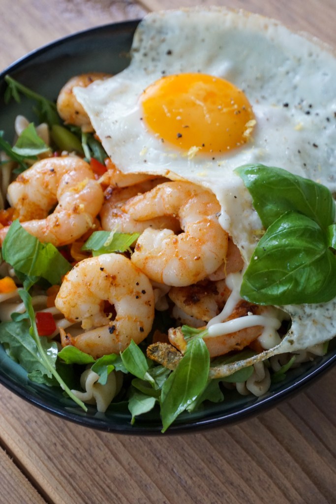 - het spiegelei kan bovenop de pasta en kan je verder afwerken met een klein beetje peper en zeste van de citroen en basilicum