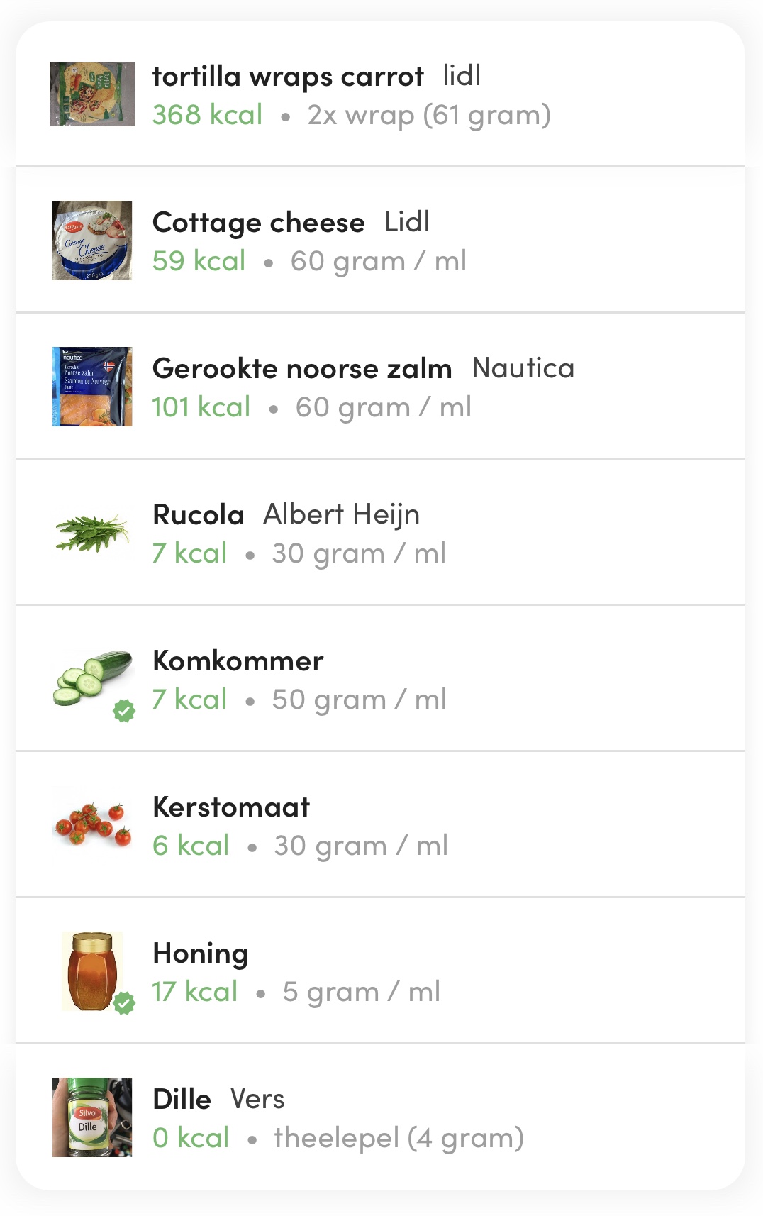 - 565 kcal met ingrediënten zoals omschreven hierboven