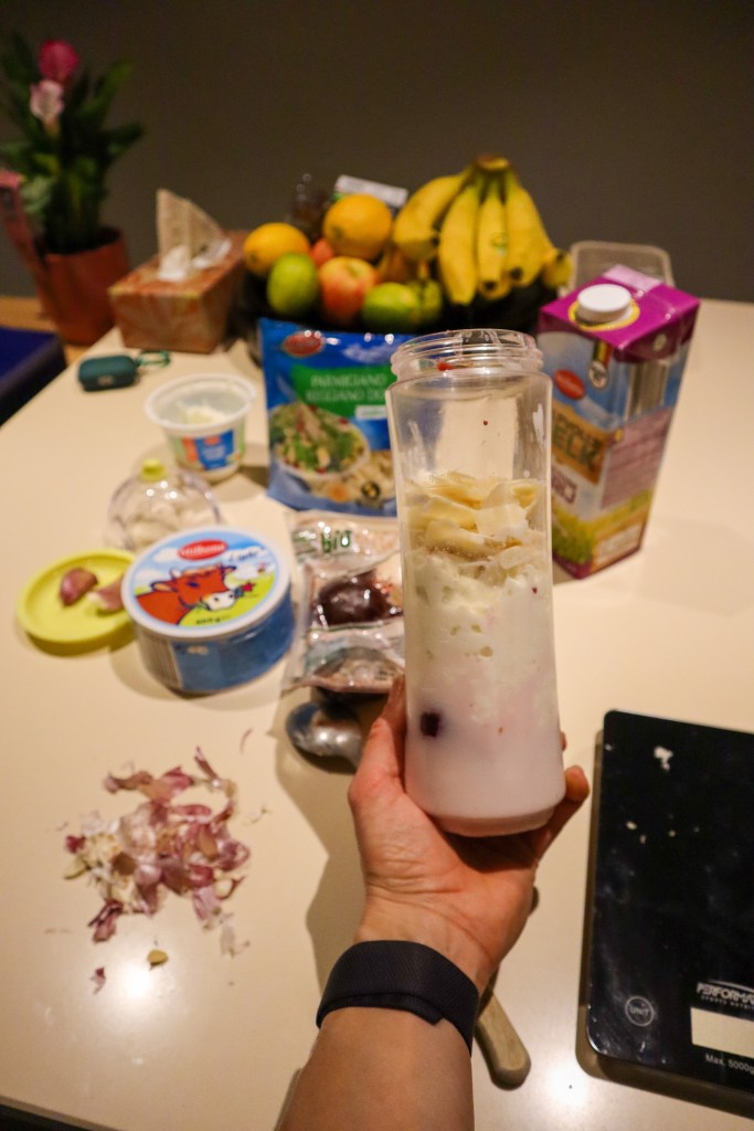 - vul het potje met de rode biet, cottage cheese, look, parmezaanse kaas, melk en een snuifje zout